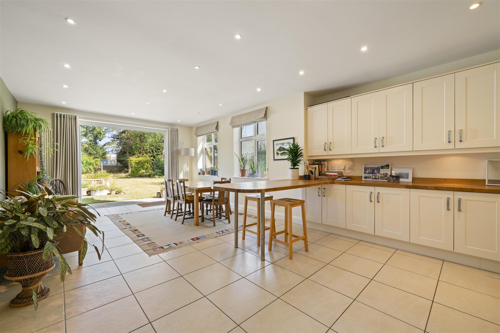 A substantial detached character property, occupying a generous 0.24 acre overall plot within a peaceful side road. whilst also ideally located for swift village centre and station access. This beautiful family home has been notably enlarged beyond its original footprint and now offers impeccably maintained and expansive living space throughout. The ground floor features a large entrance hall, two traditional reception rooms (both with fireplaces – one with a woodburning stove), a spacious kitchen / breakfast / family room, utility room and cloakroom / WC. Upstairs on the first floor there is a choice of six individual bedrooms and two modern bath / shower rooms. Externally, a new garage stands in the place of the original one from when the house was further extended, offering ample parking and / or storage solutions and complementing the off road parking for two vehicles. The rear garden is substantial and mature with a patio area, centrally lawned and thoughtfully planted with a variety of flowering shrubs and trees. In all, the rear garden extends to in excess of 160 feet in length.