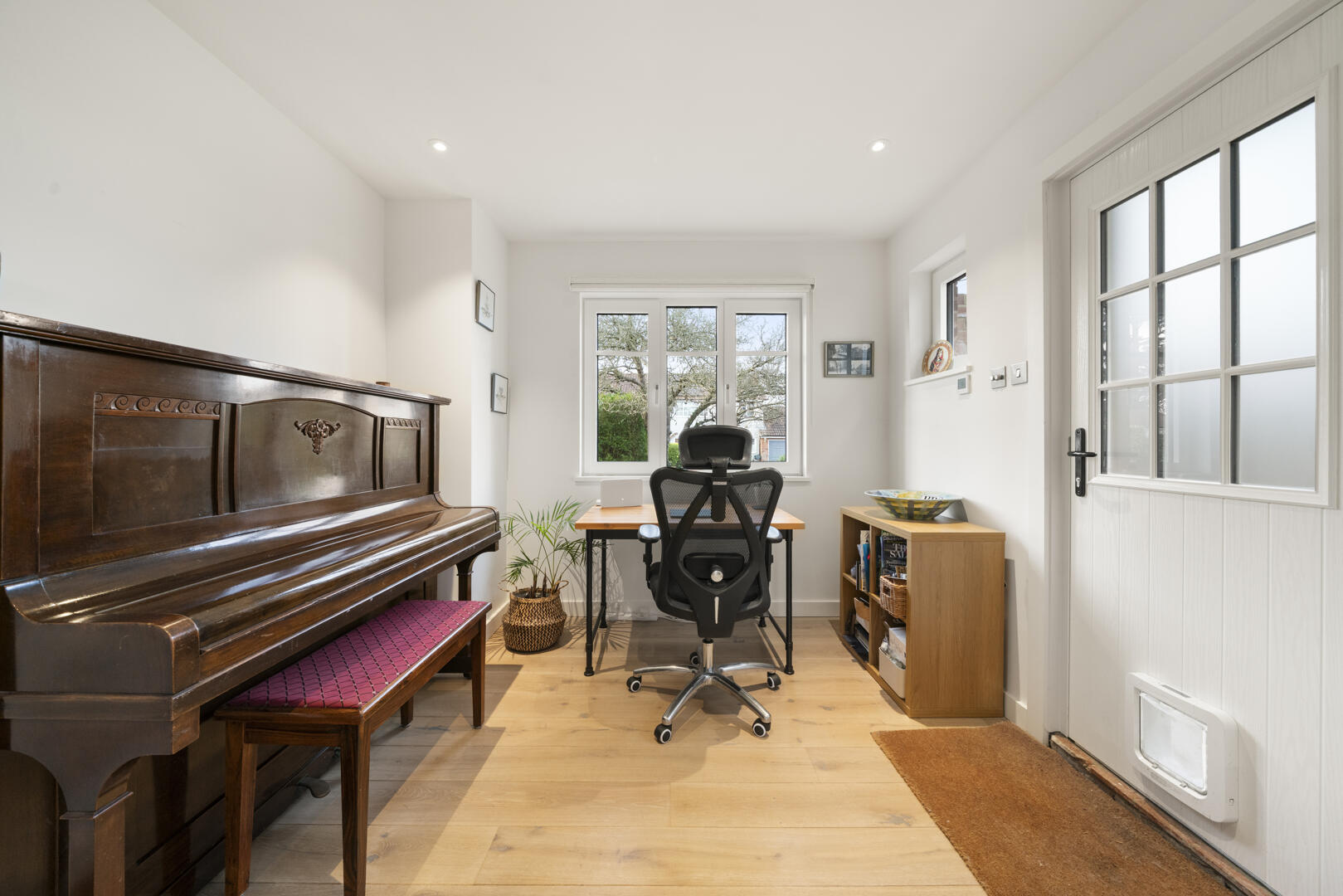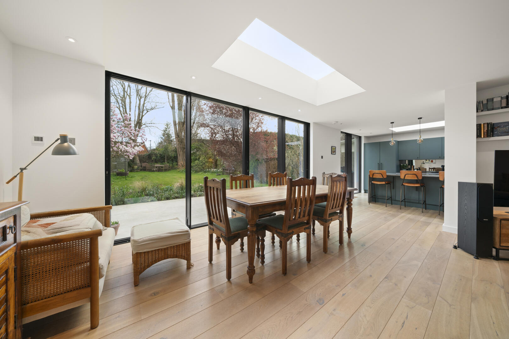 A detached home located in a consistently popular and quiet side road within just a very short walk (0.21 miles) of the village centre and station. This charming home has been much improved and updated by the current owners and comes to the market in impeccable condition throughout. Offering a layout which finds favour with today’s family lifestyles, this beautiful home could also appeal to older downsizers seeking a detached home close to all the village has to offer. On the ground floor, an entrance hall affords access to an expansive and stylishly appointed kitchen / dining / family room with bifolds looking out onto the rear garden, a separate front reception room and cloakroom / WC. Upstairs there is a choice of four bedrooms, a family bathroom and en suite shower room and additional cloakroom / WC. A sizeable garage adjoins the property and is accessible from the hall with additional off road parking to the front of the property. To the rear there is a well-maintained, South-facing garden, extending to 86 feet in depth with a wide paved patio, expanse of lawn and planted beds / borders with specimen trees including a beautiful magnolia.
